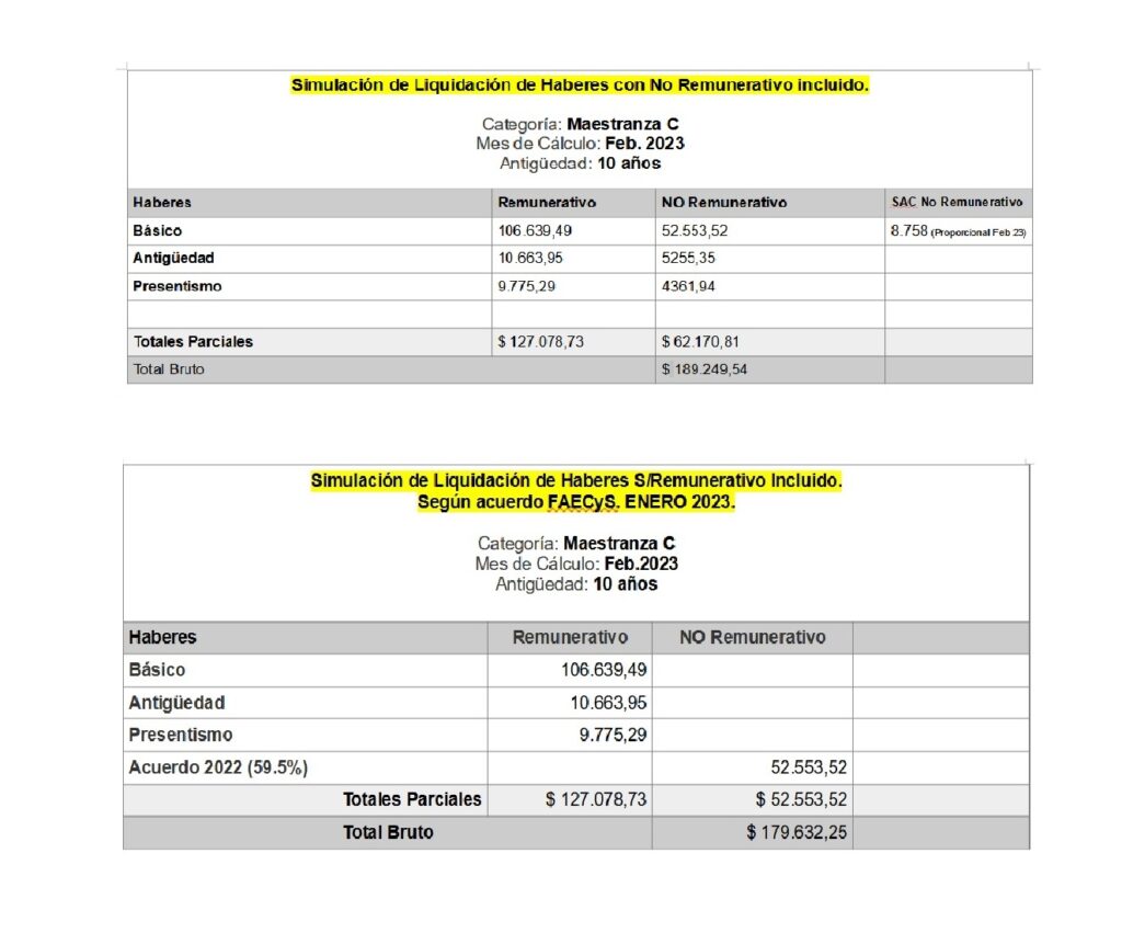 19/01/2023.- El acuerdo salarial informado por la Federación Argentina de Empleados de Comercio y Servicios (FAECyS) del 22,9 en dos tramos a cobrar en marzo y abril de 2023, que tendrá una primera entrega del 13% con el sueldo de febrero y oscila entre 18 y 20 mil pesos, y debe calcularse sobre el salario básico y el monto no remunerativo de 52 mil pesos.